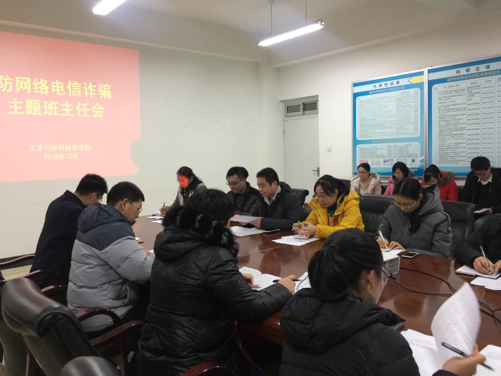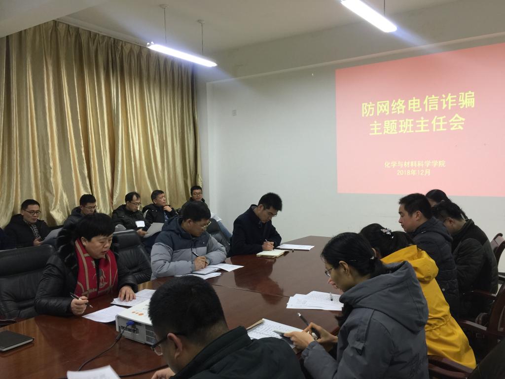 2018年12月11日下午13:40,必赢76net线路于生化大楼A313召开防网络电信诈骗主题班主任会议,必赢76net线路党总支副书记于兆玲主持,各年级全体班主任参与。