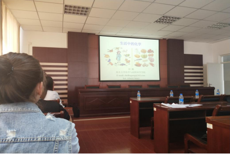 首先,刘刚副教授以“生活中的化学”为主题,从衣食住行各个方面讲述化学在生活中给人们带来的方便,其讲述的“十大垃圾食物”引起了大家极大兴趣,其幽默、诙谐的讲解带来连连不断的掌声。