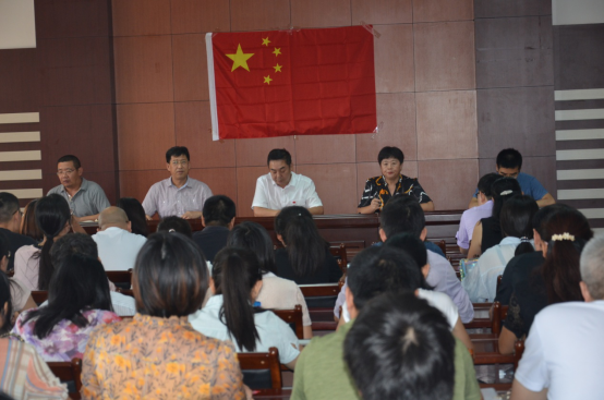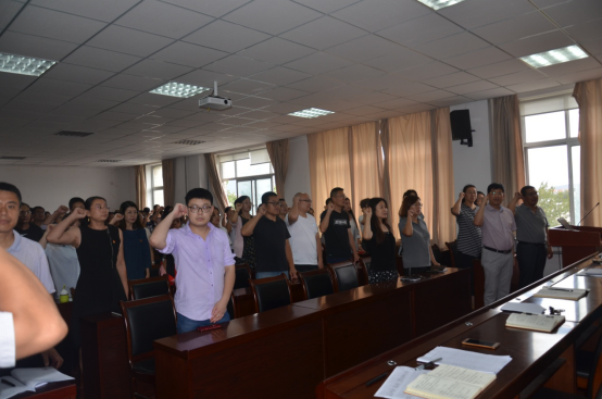 “我志愿成为一名人民教师,忠诚党的教育事业,遵守国家法律法规......”老师们面对国旗、举起右拳,在学院教工党支部书记、我校发表ESI工程学高倍引论文数最多者、博士副教授牛余忠的带领下发出了铮铮誓言。这是对落实“立德树人”根本任务的承诺,是对每位老师争做“四有好老师”的鞭策,更是奉献自己决心力量的很好体现。