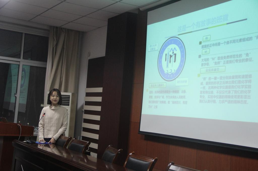 活动开始,各班代表介绍本班的班徽、班风、班训、班歌等班级标志,各具特色的班级文化建设体现了化院学子创新精神和团结进取的主人翁意识。其中,化学本1901班主任娄楠老师与学生共同演绎的班歌赢得了热烈的掌声,化学本1902内涵丰富、意义深远的班徽、化工本1901彰显青春活力的班风介绍都给大家留下了深刻的印象。讲解结束后,李扶摇从班风创意、班训内涵、班徽设计、班歌选择及视频录制技巧、讲解人体态语态等进行总结,并现场教授摄像技巧。他强调,“班级文化是班级全体成员信念、价值观的集中体现,在增强班级凝聚力、引导学生养成正确的三观等方面起到重要意义。各班学风建设不要仅仅流于形式,更要在今后的生活和学习中贯彻落实,充分调动班级中每一位同学的积极性,着力打造既有‘书本味’、又有‘人情味’的班集体。”最终,高分本1902、高分本1901、化学本1902分获本次比赛的一、二、三等奖。