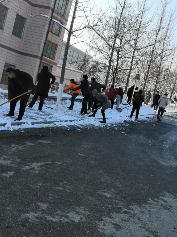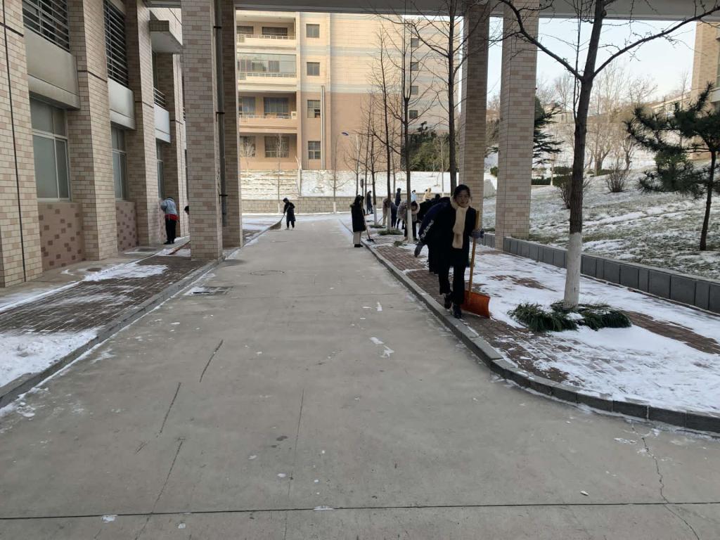 当天,天空中飘起鹅毛大雪,校园里银装素裹,但也为师生出行带来了安全隐患。化学院师生早以严阵以待,按照既定的区域划分开始扫雪。在扫雪的过程中,同学们齐心协力,先完成卫生区域扫雪工作的同学主动去帮助其他同学,大大加快了扫雪工作的进程。路过的学生也受到感染,加入倒了扫雪的队伍中。最后,道路上的积雪在同学们的共同努力下被清理干净,安全隐患得以消除,同学们都露出了欣慰的笑容。