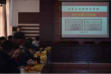 2020年1月14日,化学学院领导、各教研室教师及学院各部门工作人员在生化大楼A座307召开了2019年工作总结暨新春茶话会。