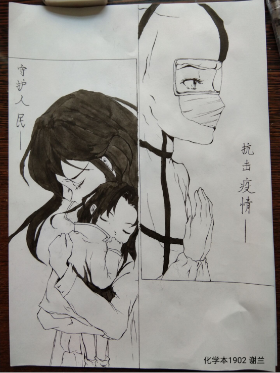 活动中,同学们通过诗歌、短文、绘画等形式,描绘出白衣战士们勇敢坚强背后的压力和辛苦,深切地表达了对白衣战士们不怕牺牲、勇担重任的崇敬之情,同时也表达了同学们对白衣战士们辛勤付出的感激之情。材料本1901班的沈彦琴同学写下:“逆行者们用青春和行动书写时代最美篇章,用汗水和付出诠释青年的责任和担当。”一首首诗歌、一幅幅绘画背后是一颗颗滚烫炽热的心,表达着化学院全体师生与一线工作人员齐心协力、共抗疫情的决心。