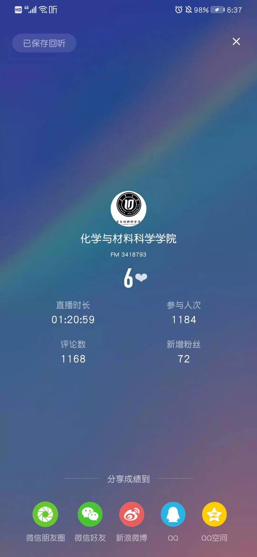 9月20日晚7时,化学院依托学院电台,采用线上直播形式,面向全体新生开展“风里雨里,‘小萌新’在我心里”迎新预指导活动。辅导员及学生会代表针对新生入学前准备、入学报到及注意事项进行了全面细致的讲解,耐心解答新生们关心的提前到校、报到地点、食宿生活、自习室分配等问题,获得了新生们的广泛好评及点赞收藏。活动直播时长达120分钟,共有1180余人次参与,收获评论数1168条,为学院迎新工作铺路架桥,同时也畅通了新生入学报到之路。