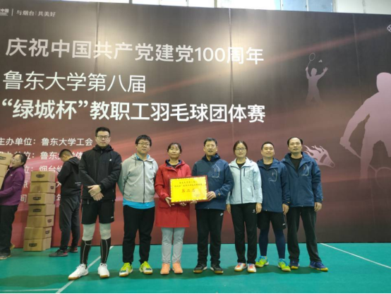 在鲁东大学第八届“绿城杯”教职工羽毛球团体赛上,由于兆玲书记担任领队,刘希光、乔青安、徐彦宾、张升晓、孙文芝、高太平等作为队员的学院代表队团结协作、顽强拼搏、奋勇争先,获得团体赛第2名的优异成绩。