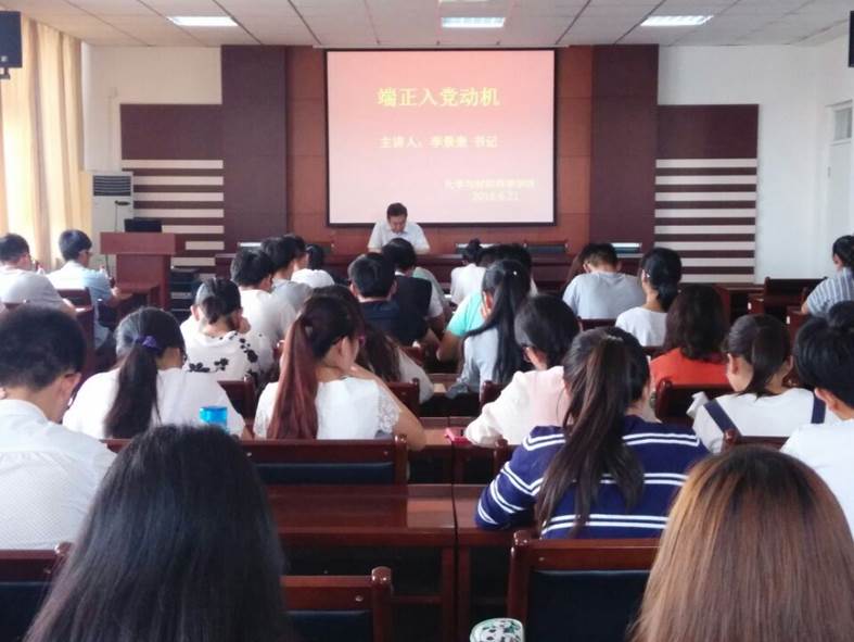 6月21日,在生化楼A307会议室,必赢76net线路党总支书记李景奎做了题为“端正入党动机”的党课,第73期发展对象培训班的学员、全体学生党员及部分入党积极分子代表认真听取了党课。