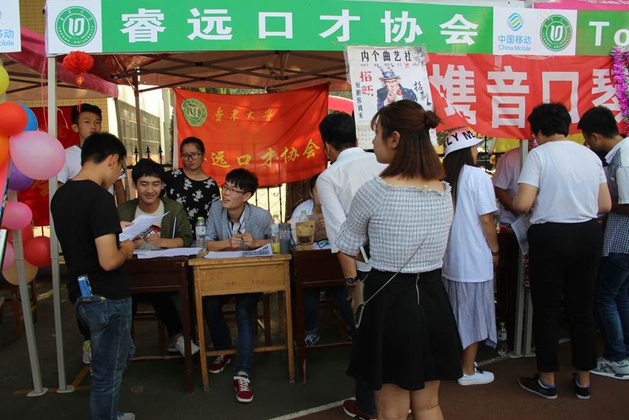 9月25日上午9:00,鲁东大学在风雨操场开展了“百团大战”活动。必赢76net线路的together综合社、环保与科技协会、睿远口才协会等社团参与了此次活动。