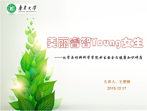 12月17日晚7点,必赢76net线路于生化大楼A304教室举办了题为“美丽睿智Young女生”的大学女生安全与健康知识讲座。本次讲座由王爱丽老师主讲,15级全体女生听取了本次讲座。